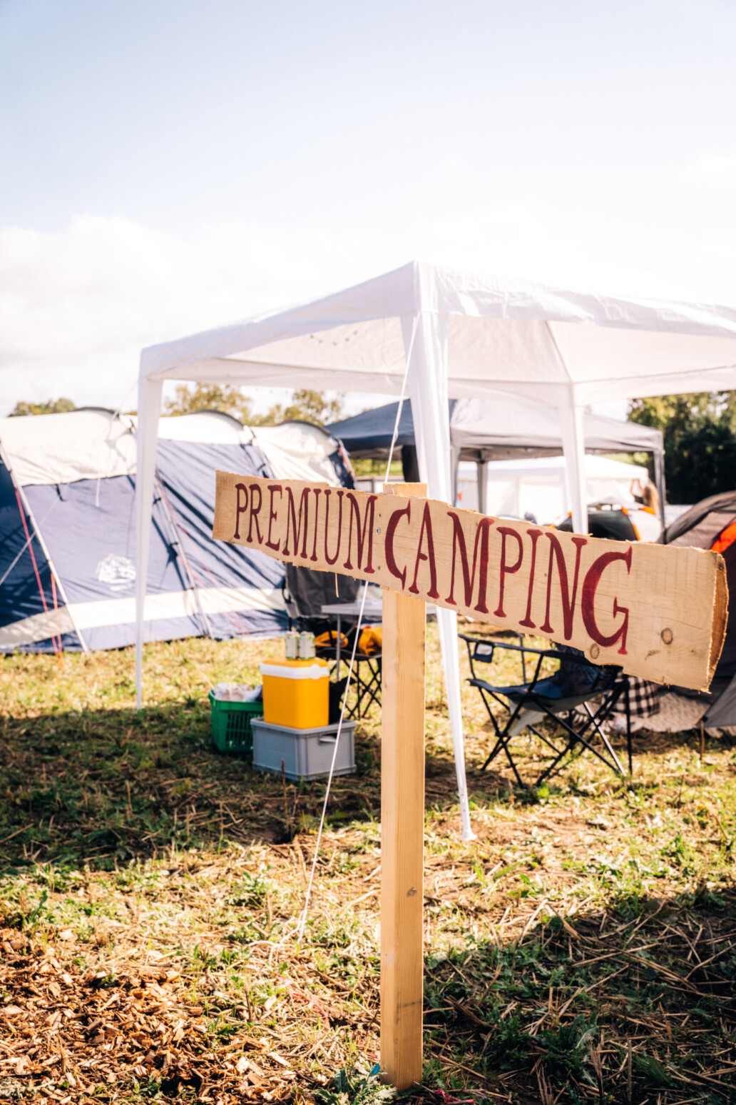 - Premium Camping: Mehr Platz, komfortabler, und mit der Möglichkeit, Pavillons (max. 3×3 m) aufzustellen. Pro Person stehen hier 6 m² zur Verfügung.